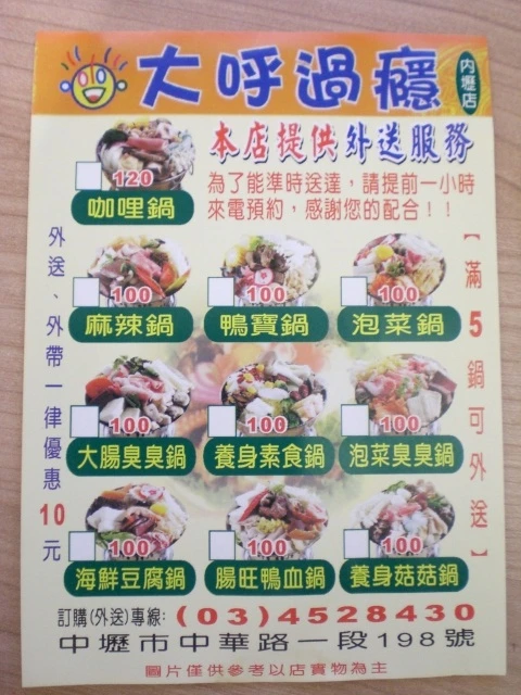 外帶及外送還可再優惠10元...哇~~一鍋才90元阿..住在內壢有口福囉!!電話:03-4528430 (外送服務喔^^)